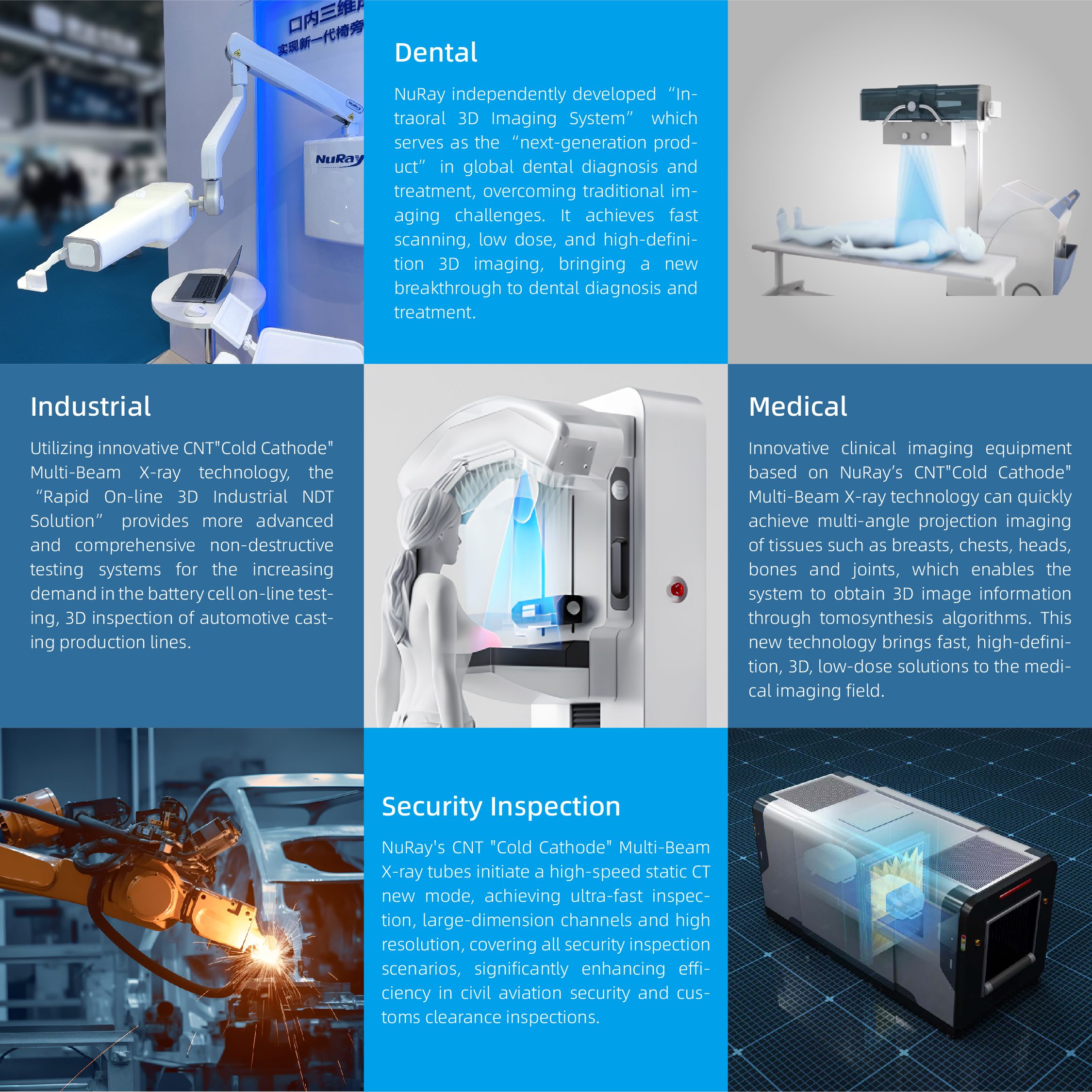 NuRay, founded in 2015 and headquartered in Changzhou, Jiangsu Province, is dedicated to the research, development and production of CNT “Cold Cathode” X-ray tubes, and continues to develop key technologies to provide innovative solutions for security inspection, medical and dental diagnosis, industrial NDT and other fields.